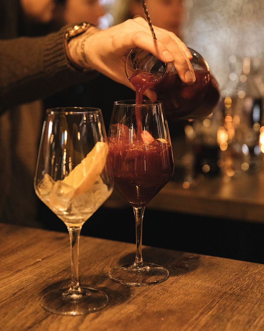 Vill Du bara sippa på en Sangria, en öl eller Cava i baren, äta en härlig middag eller småplocka lite före eller efter teaterföreställningen?